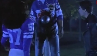 In the clip above, a pole-vaulter’s dismount is ruined by spikes and we’re not talking about the ones on his shoes. And Graduation Day features another football death the likes of which we covered in Prom Night III: the ol’ killer football, in this case, complete with a sword…definitely a 15-yard unsportsmanlike conduct penalty.