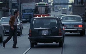 James Woods plays Max Renn, president of Civic TV, a station modeled after Toronto institution City TV. In its early days, City TV was (in)famous for its late night “Baby Blue Movies”- in actuality soft-core films. In the film, Civic TV is a sleazy station which airs salacious, pornographic content. However, Renn wants to push the envelope further. When an employees discovers an encoded video transmission entitled “Videdrome” depicting actual murder, torture and dismemberment, Renn becomes obsessed with finding the source of the transmission. His search leads Renn down a rabbit hole of danger, hallucination and madness.