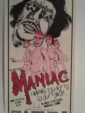 Vincent Canby of the New York Times said this of Maniac: “watching him act like a psychopathic killer with a mommy complex is like watching someone else throw up.” We recall reading Leonard Maltin’s take, which actually got one of us to rent Maniac…He bestowed on the film his BOMB acronym — “bottom of the movie barrel” — calling the William Lustig masterpiece, “a claustrophobic, sickening film.” (Maltin also called The Brood a BOMB. May an IED obliterate his laptop.)