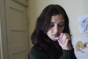 Leah Garrison (Katie Findlay in an endearing and grounded performance) is a young graphic novelist struggling with depression and agoraphobia since the suicide of her alcoholic, artist mother – a death which Leah blames herself for. Her fears manifest in hallucinations, and she sees literal monsters in everyday observances such as a man walking by talking on his cellphone or a neighbor taking out the trash. Thus, she whiles away her days at home inside, unable to create and in the company of her supportive father (Enrico Colantoni) and somewhat resentful brother.