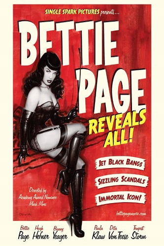 Authority figures play a recurring role in Page’s life, from her “talent agent,” the beat cop, to her first husband in the military (servicemen being the primary audience for her work) and then to Brigadier General who did a notorious nude photo shoots with the pin up icon; and finally, morality police busting the camera club photo shoots for indecency.