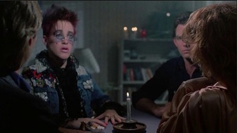 Everything grinds to a halt at the party, because nothing is more exciting than Ouija. Linda (80s video vixen Tawny Kitaen) indulges Brandon and puts her hands on the planchette as they attempt to communicate with the Great Beyond.